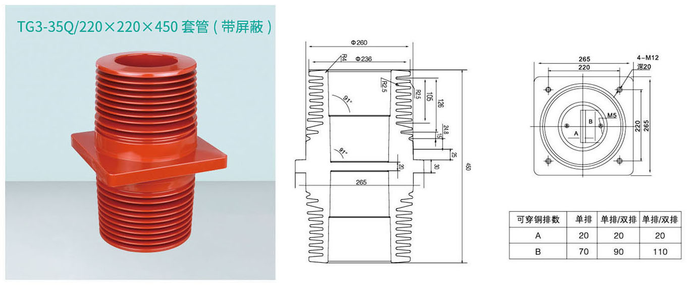 TG3-35Q/220×220×450 套管(带屏蔽)